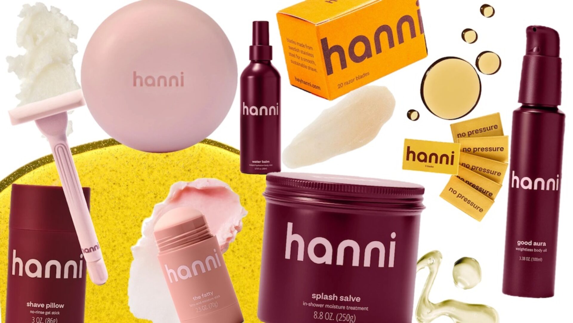 Hanni transforms your daily routine into something covetable. Whether you glide The Fatty over winter elbows, mist Water Balm during summer’s heat, or let Splash Salve’s in-shower magic carry you out glowing—each product whispers chic, never loud.