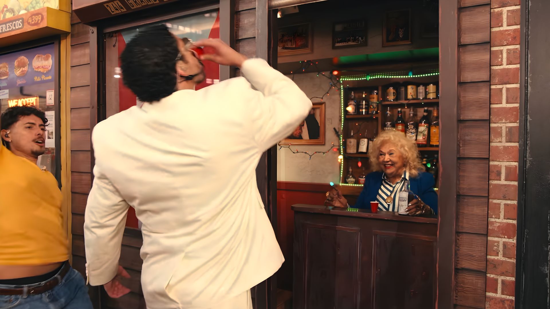 Not only spotlighting Puerto Rico, Bad Bunny’s “Nuevayol” highlighted Nuyorican culture, with a set that mimicked a marqueta, a barbershop, and the famed Toñitas, a Puerto Rican social club in Williamsburg, Brooklyn, also referenced in the song. The club’s owner, Toñita herself, was part of the big night, even handing the artist a shot.